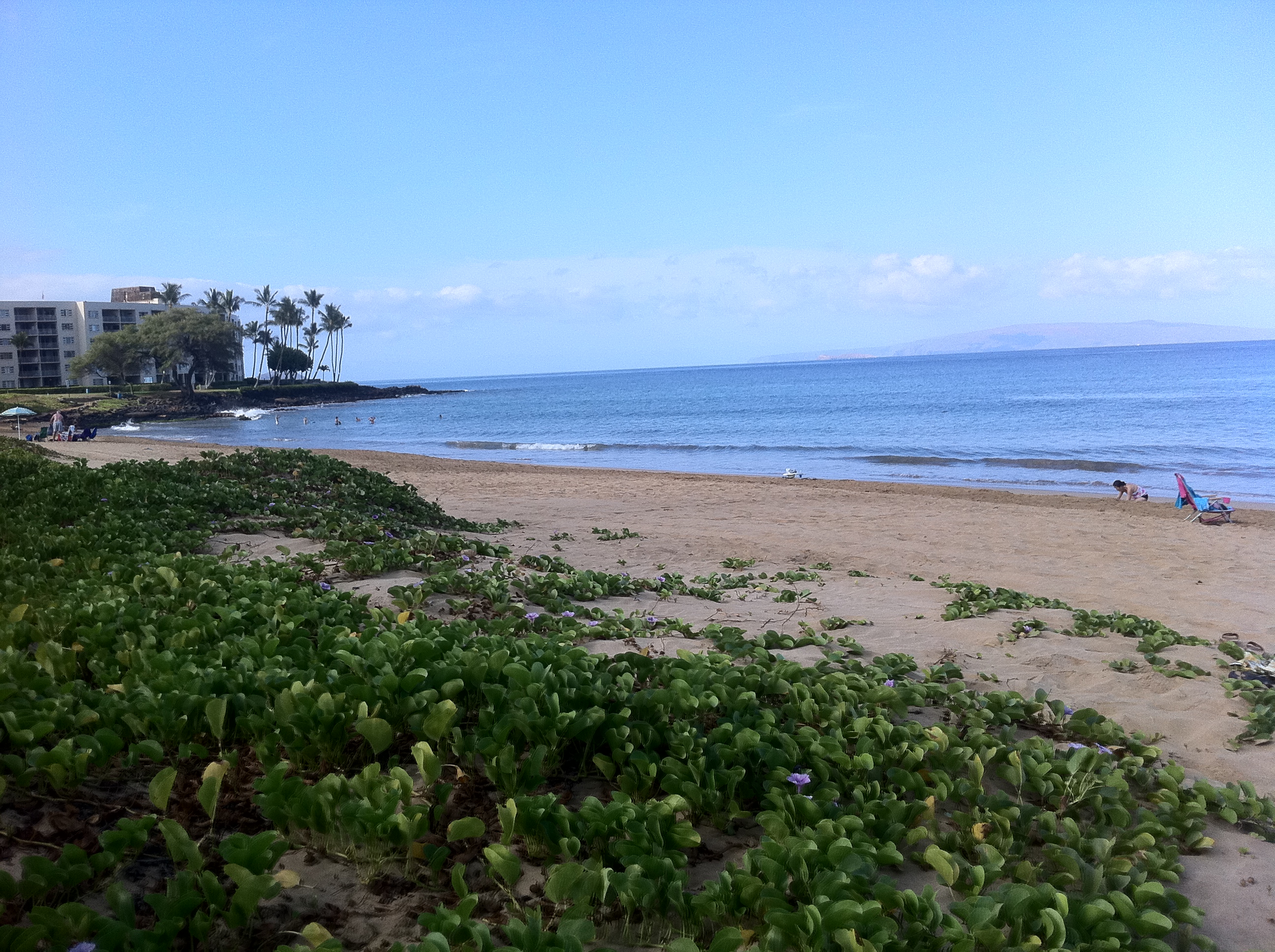 You wouldn’t know it by looking at this beautiful photo of Kam I, but it got crazy windy out there today! Fifteen minutes into my morning paddle, in roared a North wind, and took everyone by surprise. It was wild! Luckily I was headed in the other direction, so I knew I could ride the wind for a while, so I stuck it out to get in my hour paddle workout. I made it down past Kam II and then decided not to push my luck, so I turned around. Before I knew it, the wind changed directions and it was at my back again! By this time, though, the conditions had gotten very rough with major chop and white caps. I decided to get down on my board so I could paddle deeper and move a little faster. I made it down as far as Charley Young Beach and ran into a paddling friend. We both laughed at ourselves out there in the chop and headed back towards Kam I. Finally the wind backed off some and we were able to stand up on our boards. No looking for sea life today…. My only concentration was focused on staying on my board! I told my friend that I call these kinds of days, “Disneyland ride” days since that is what it feels like. It is good to have a day like this once in a while because it makes you really practice your skills of balance and technique and you are reminded of how unpredictable the ocean can be!
