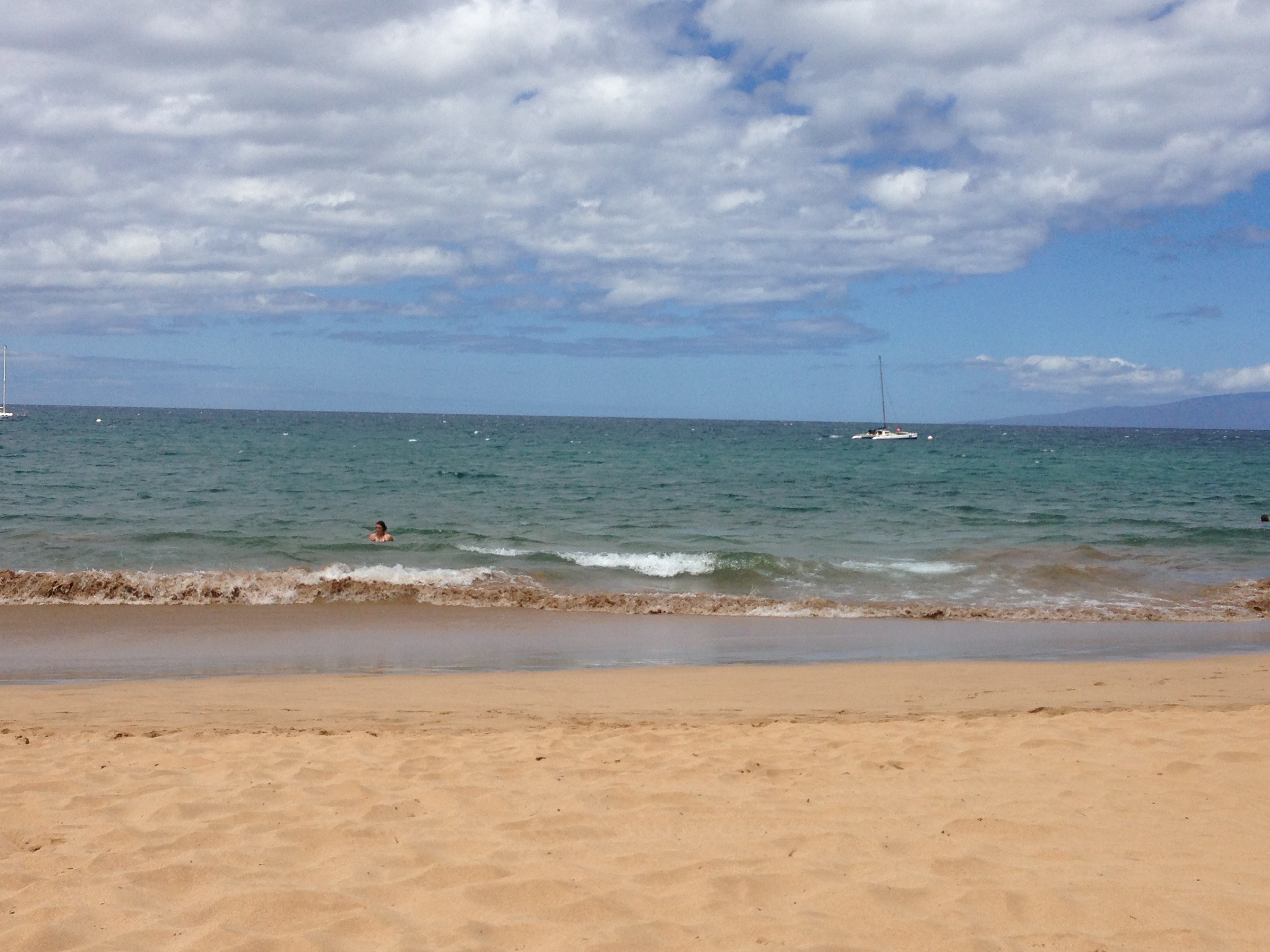 We are under a tropical storm warning from “Flossie”…… which is making its way towards Hawaii, supposed to hit the Big Island possibly by tonight and then on to Maui. Knowing this, I really wanted to get out and paddle because if this happens it might be stormy for a few days. It was already windy when I got down to the beach and some paddlers were already coming in “huffing and puffing” from paddling in the wind! Oh well, I needed to get out so I went for it. I decided to paddle into the wind and went north, but by the time I was almost to Cove Park, the wind backed off and it got glassy and nice! I hurried to turn around and head south, towards the boat ramp and it was nice paddling all the way down. Just as I headed into Kam III, two turtles popped up so I stopped, but before I knew it, the wind roared in with a vengeance and I had to turn back. It was a lot of work paddling against that wind all the way back to Kam I! I also noticed that I seemed to be the only one out there too, so that always makes me cringe. I made it back okay by just paddling and paddling and paddling! I was really tired but the wind was not backing off this time, so it was a rough water swim for me today too! I decided to swim into the wind and then ride the push back. It’s kind of shame that this storm could be messing with the water visibility since it was just clearing up nicely, but the other side of it is that the island could really use some rain! I wonder what tomorrow will be like???
