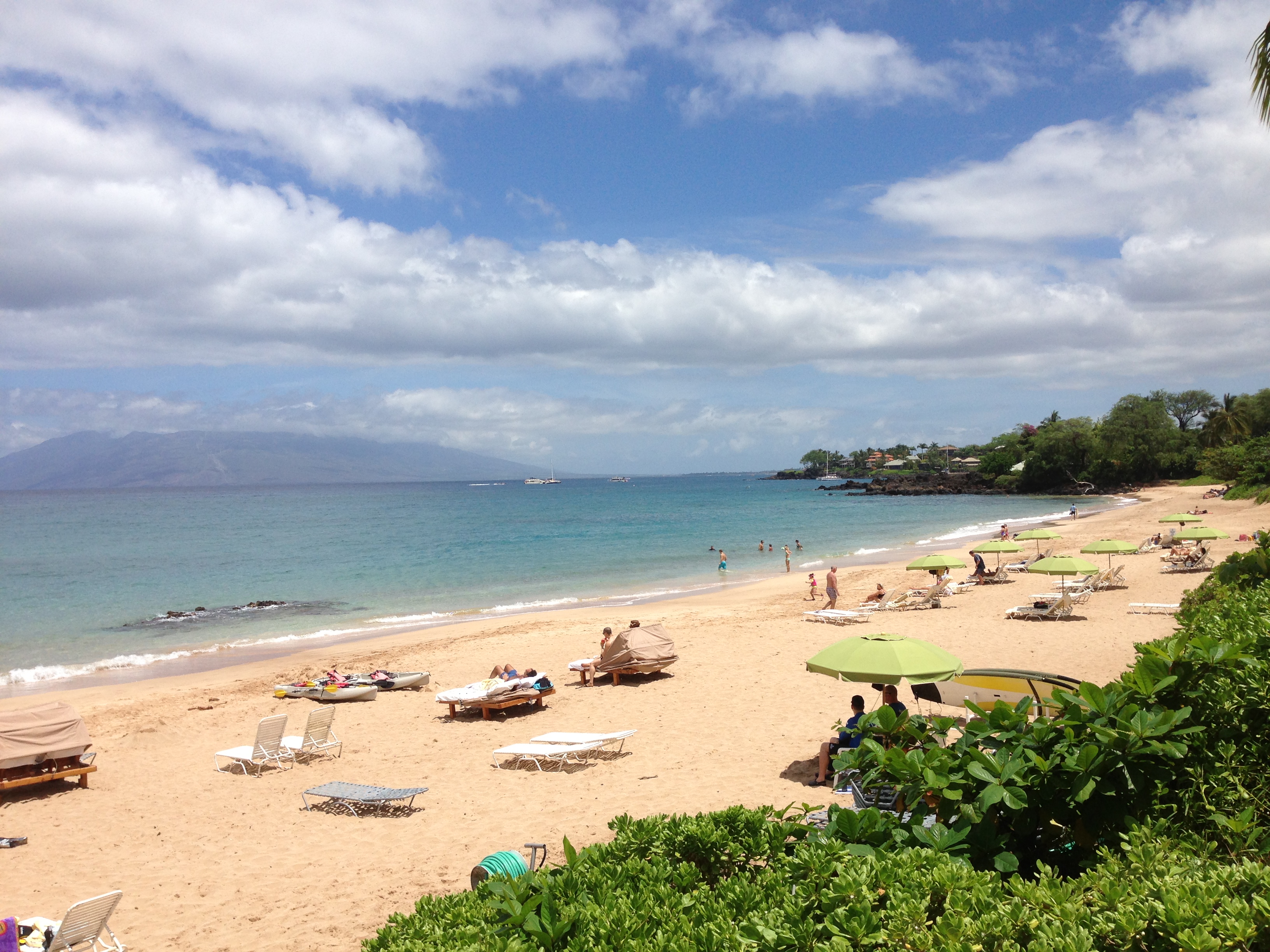 We decided to go on a little “stay-cation” right here on Maui, to celebrate our 30th wedding anniversary. We both like Makena so that’s where we headed and spent a couple of days at the Makena Beach and Golf Resort. It’s a nice resort and the last one in that direction for South Maui. I like the way it is away from the rest of the resorts in Wailea and so much quieter and peaceful. Monday morning was really nice, so I headed down to the beach. The conditions for paddling were perfect so I broke down and rented a stand up board and paddle. Forty dollars for one hour! And the board wasn’t the best board either, but I managed. I have been wanting to paddle Makena for some time and this was my opportunity! Unfortunately, the resort has “boundaries” for where and how far you can paddle……so I stretched their boundaries as far as I could. I paddled for my hour and it felt good to be out on the water! I didn’t see any turtles, though, so I would bet that the turtles are beyond the resorts boundaries. Oh well, I will have to come back another time with MY board and then I can paddle wherever I want! Snorkeling was another story….it was great! Lots of tropical fish and nice coral to swim around. I saw a huge purple coral too which I have not seen before! It was a nice little mini trip but I will be glad to be out in my usual spot paddling tomorrow!! I hope the wind doesn’t come in early like it did today…..we will see…..