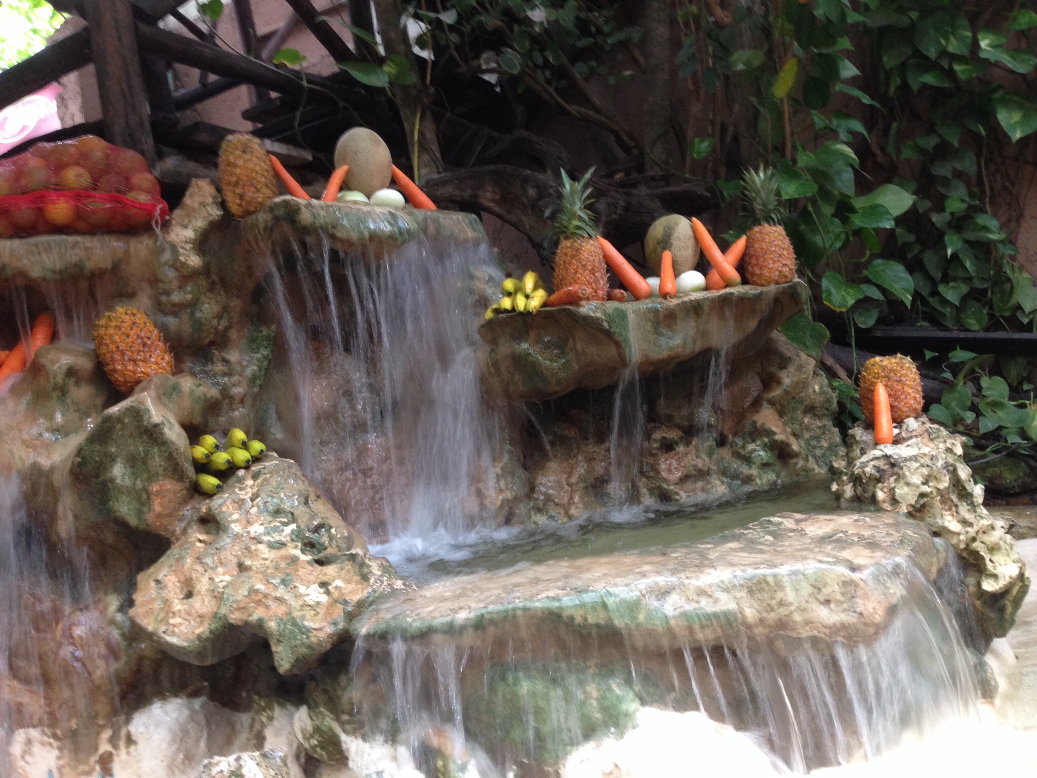 Thank goodness for the fitness center! After our workout we headed for Playa del Carmen. We walked the tourist streets full of stuff people were trying to sell and finally made it to the restaurant we were looking for……100% Natural Restaurante! We got the table next to the waterfall and ordered the Shrimp and Veggie skillet and a pitcher of homemade lemonade & lemongrass. The lemonade was great! The shrimp skillet was just okay…… very healthy though. Then we walked back and stopped to sit at the town centro for a while. The cloudy skies persisted and it sprinkled rain intermittently but it was a nice outing. We just might have to head over to the resort store later and indulge in some Gelato! I hope the weather clears up by tomorrow……I’m anxious to get back out on the beach…….