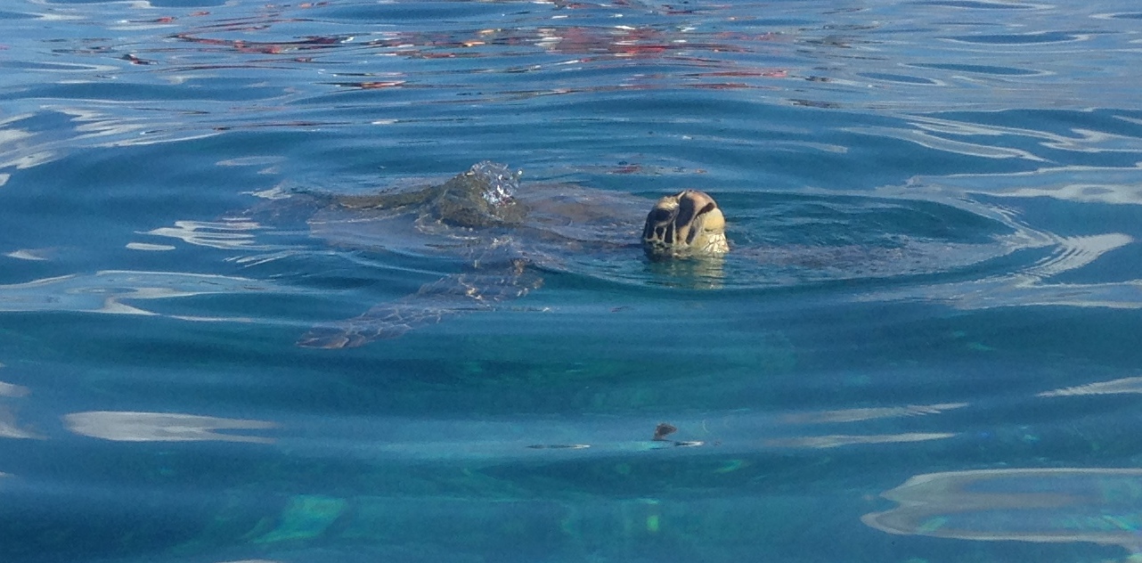 Even Bumpy was there being friendly as usual! At least the snorkel boat is now having one of their crew get in the water with the snorkelers and telling them not to chase or harass the turtles. I think it is making a difference! I stayed quite a while there enjoying the turtles and the perfect conditions and enjoyed nice conditions on the way back too. Just as I was coming in from paddling, some friends that are visiting from Oregon snatched me up to go snorkeling in Makena! What a treat! So many colorful fish there and I followed a big Parrot fish around the reef. What a great spot to swim and snorkel! And what a spectacularly beautiful day on Maui!