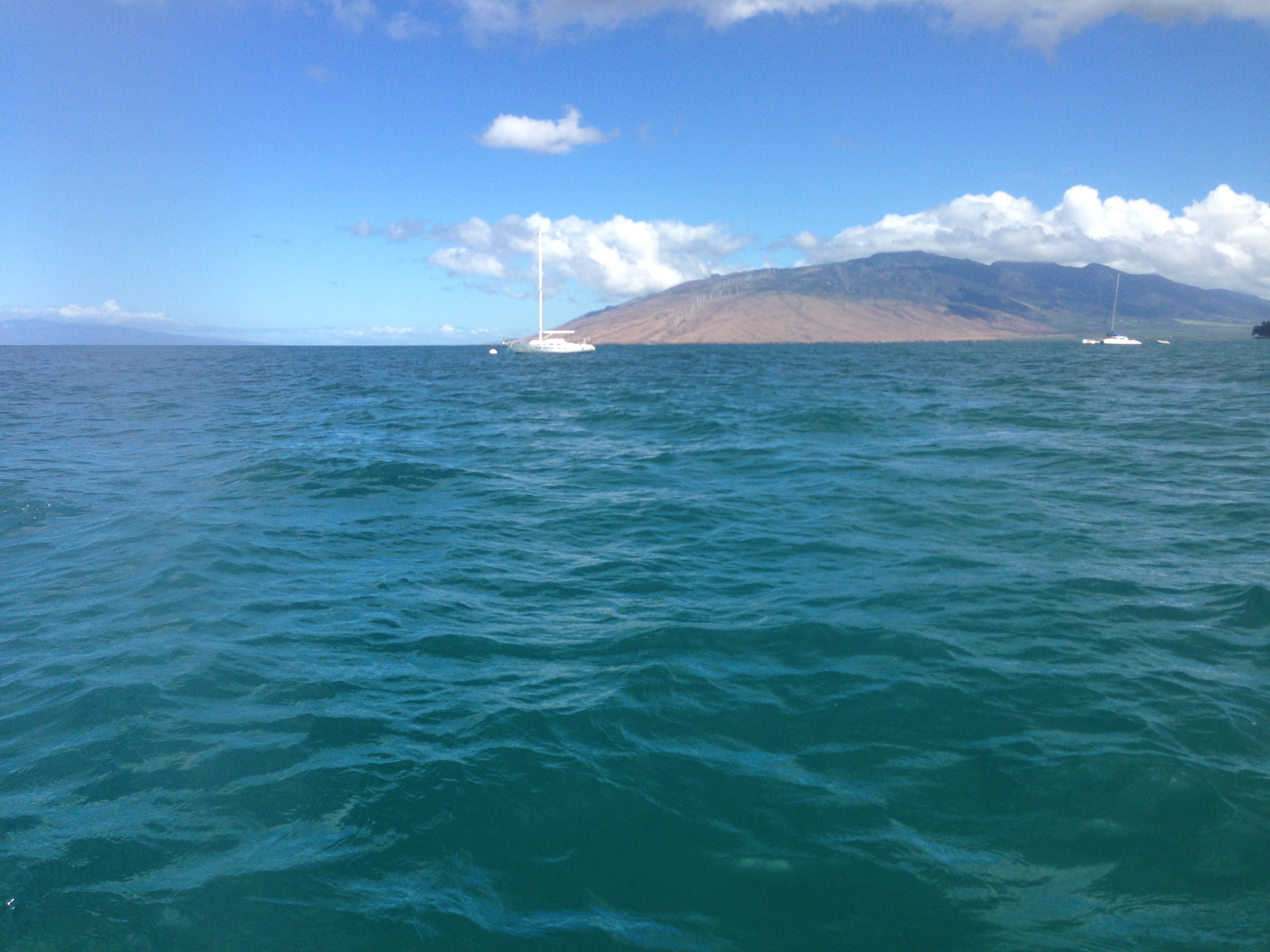 I was out on my board before 9:00 a.m. and it was calm so I was planning to head down to the boat ramp. Then I ran into a paddling friend who reported seeing a pod of dolphins out from Cove Park traveling north! We headed out in hopes that the dolphins would turn and swim in our direction. We got as far as Cove Park and not a dolphin was in sight! By then, the wind had picked up and there were some rolling swells coming through….. so we headed south. I paddled by myself down to the end of Kam II and then turned around because the wind was getting stronger. I paddled in and by the time I went for my swim….the wind backed off and it was perfect! It was very nice for swimming…… much nicer than when I was paddling earlier! I didn’t see a single turtle today either. It sure was beautiful though!