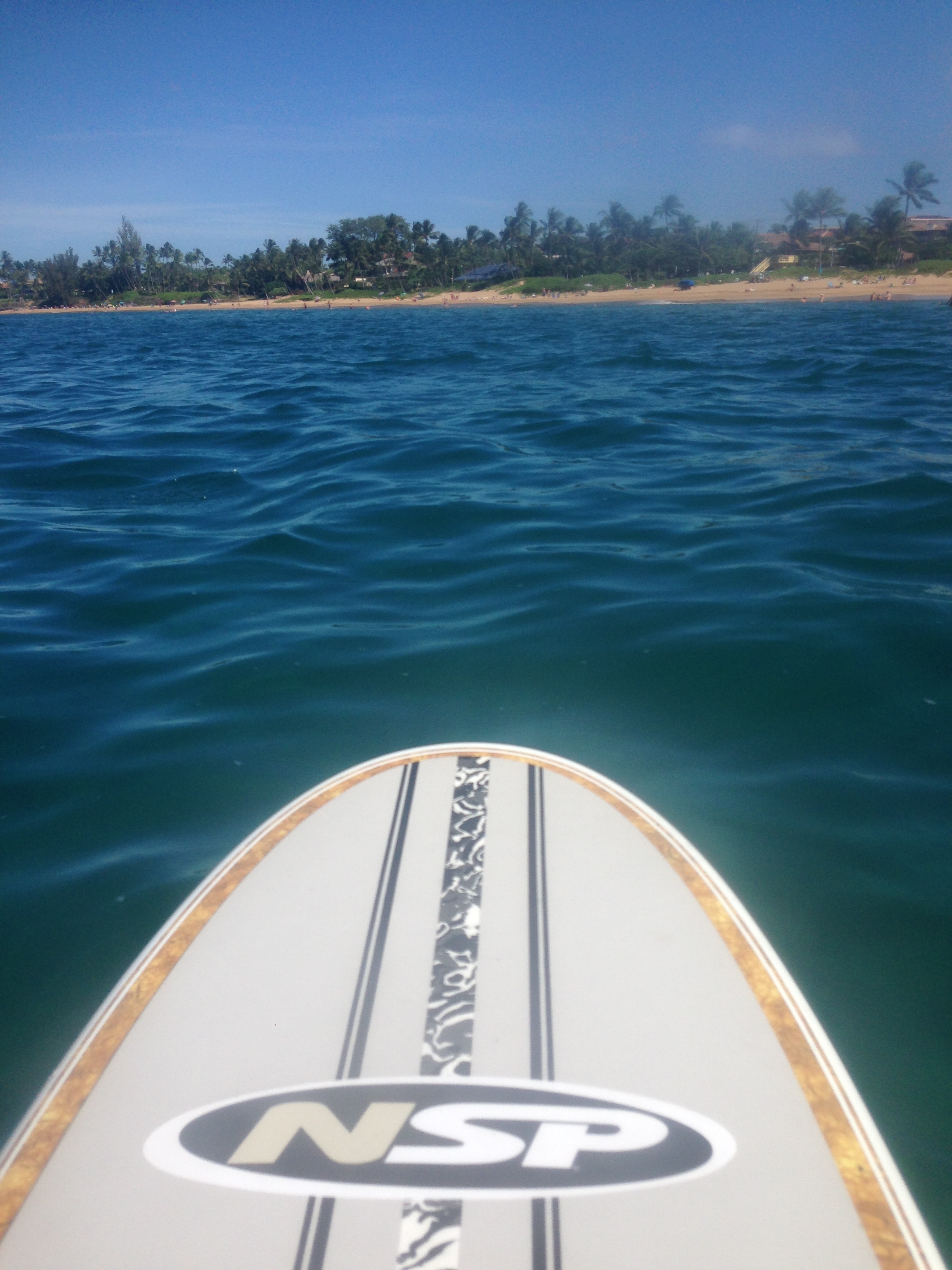 When I got up this morning, the skies were overcast and it was a bit windy. Finally the sun came out and I headed down to the beach. The wind was still blowing but I decided to go out anyway. The wind was blowing from the south, like yesterday, but today it was stronger. I paddled against the wind all the way down to the boat ramp, but when I arrived there, the wind backed off a bit and it got really nice down there! One turtle popped up as I passed Kam 3, but no turtles surfaced while I was at the boat ramp. Two people were snorkeling so I asked them if they were seeing any turtles and they said six turtles were down on the bottom. For whatever reason, the turtles are not coming up like they usually do. I met a paddling friend down at the boat ramp, so we paddled back together and the wind pushed us north. She went in at Kam 2 and I headed back to Kam I. Just as I was passing the point between the two beaches, I spotted a big turtle under the water! It was windy, but I tried to stay with it until it surfaced. It surfaced twice, but I was getting pushed around by the wind! I made it in but it stayed windy while I swam too. The water is still so warm and there were a lot of fish down by the reef. I hope this early morning wind stops soon. The trade winds are necessary, but usually they wait until later in the day to come up. I want another calm day like yesterday! I know…..I’m spoiled!