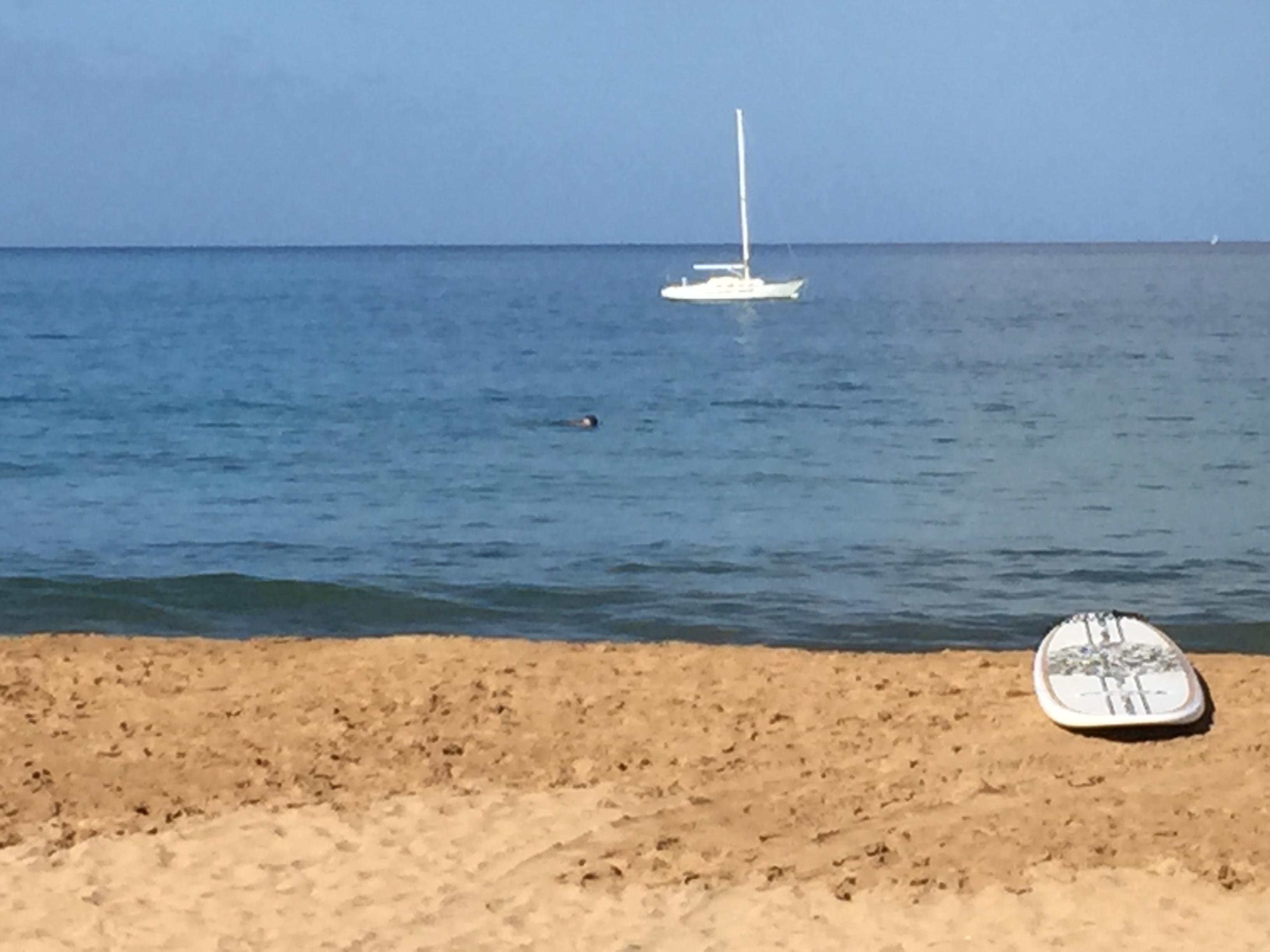 Easter morning was beautiful. The wind was blowing from the west/onshore and the ocean wasn’t as calm as I like it. I first paddled south and met up with a paddling friend…..we talked about the wind. We decided to paddle north to Cove Park and look for Manta Rays. Several people had mentioned Manta Rays there the last few days. We paddled down past Charley Young beach but no Manta rays! We turned south and paddled down to Kam 2. The wind wasn’t letting up, in fact, it strengthened! The ocean was stirred up and got bumpy. We paddled to Kam 3 and then I decided to paddle back to Kam 1. No turtles for today and no Manta rays! The wind backed off some during my swim and that was nice. At least it was a beautiful day for Easter!