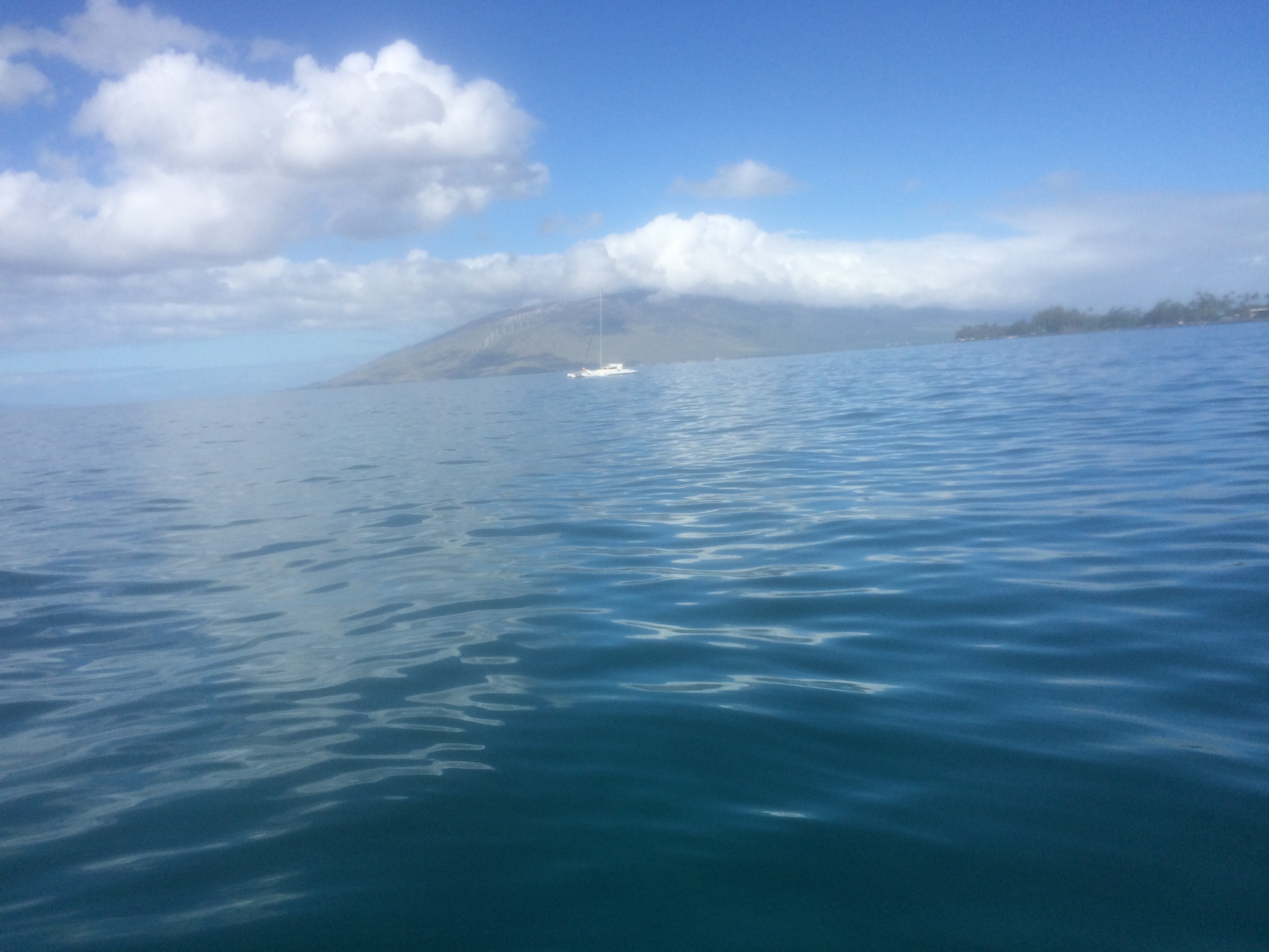 It was still a beautiful day but it started out windy. I headed south hoping the wind would back off. I ran into a paddling friend at Kam 2 and we paddled on down to the boat ramp. It was still windy and a bit choppy but we hung around to see if the wind might back off. We saw only one turtle and it seemed the wind was going to stick around….. So we headed back north. Just as we entered the Kam 2 area….. My friend saw a whale breech way out! I missed it! Then suddenly the wind totally backed off and it got really perfect! Now it would be hard to go in but I wanted to swim……